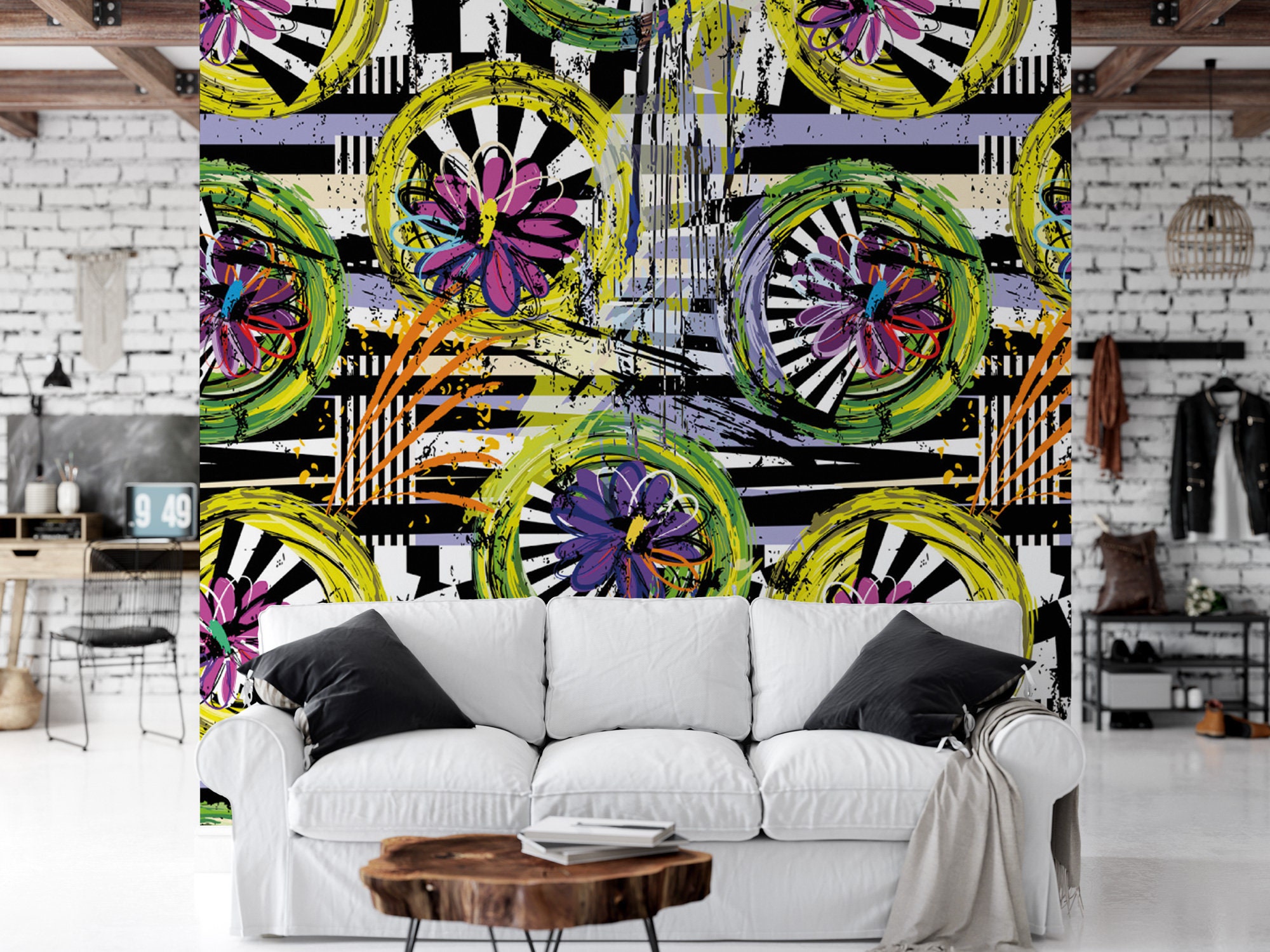 Buy Wallpaper Peel And Stick Wallpaper Bold Blooms And Circles Online In India Etsy